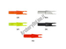 Le cocche Beiter asimmetriche a inserto si adattano perfettamente all'angolo asimmetrico della corda in trazione. Per assicurarsi che la cocca sia posizionata correttamente controllare che la tacca per il punto d'incocco guardi avanti.