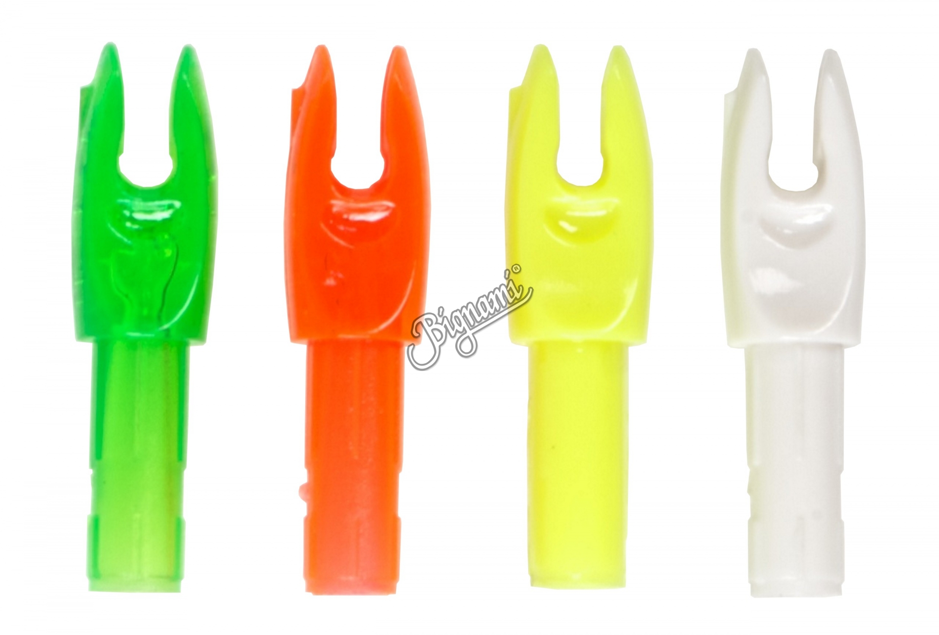 Cocche ad inserto per diametro interno 5,2 mm. Disponibili nei colori: blu fluo, verde fluo, arancio opaco, giallo opaco, bianco opaco.