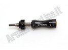Bottone ammortizzatore con regolazione micrometrica della pressione della molla e scala graduata con visualizzazione della posizione, movimento molto fluido.